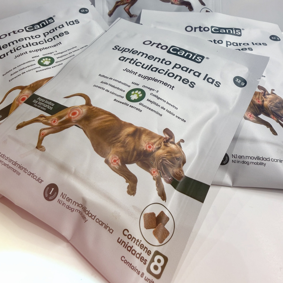 Sobre de 32 g. del nuevo suplemento nutricional para perros